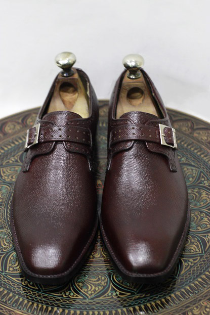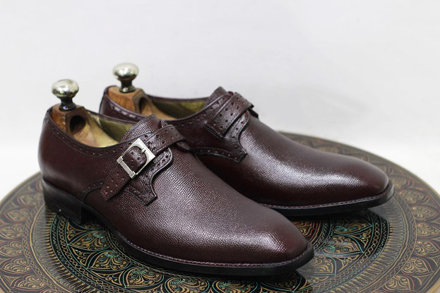 New Men's Handmade Leather Shoes Dark Brown Textured Leather Buckle Strap Stylish Slip On Dress & Formal Shoes