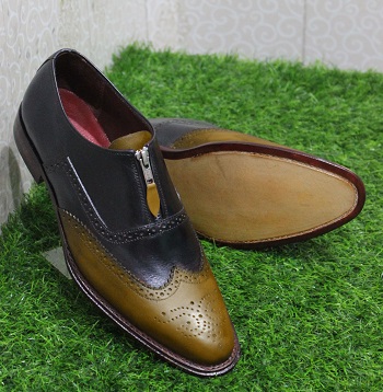 Men's Handmade Leather Black & Brown Leather Stylish Front Zipper Style Wing Tip Casual & Dress Wear Boots