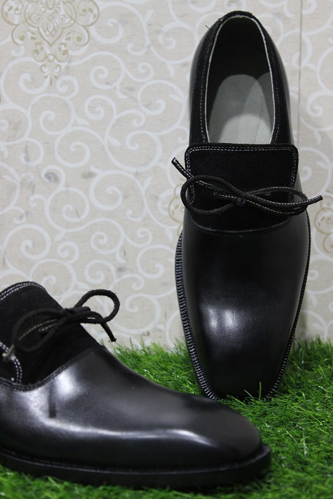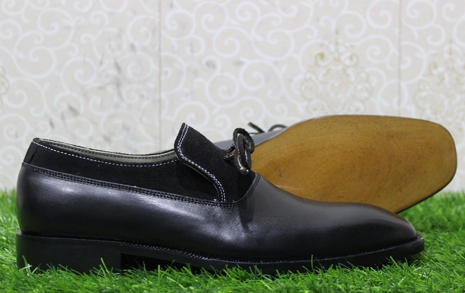 New Mens Handmade Formal shoes Black Suede & Leather Single Lace Slip on Dress & Casual Wear Boots