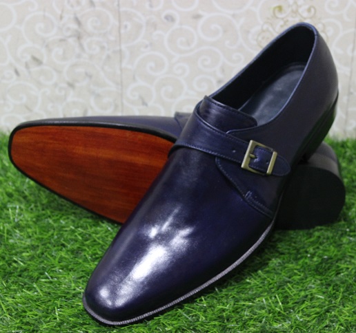 New Mens Handmade Shoes Monk Moccasins Navy Blue Leather Single Buckle Dress Boots