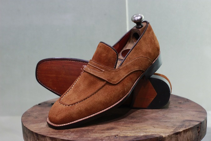 New Men's Handmade Suede Leather Shoes Camel Suede Leather Loafer Slip On Style Moccasin Shoes