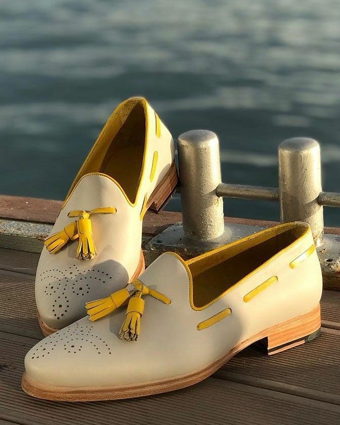 Inner: Soft Sole: Leather Gender : Male Heel: Leather Color: Gray & Tan Style: Tassel Loafer Totally Hand stitched Manufacturing time 7-10 business days If you can’t find your Size/Color just send us message we will make for you.